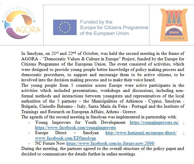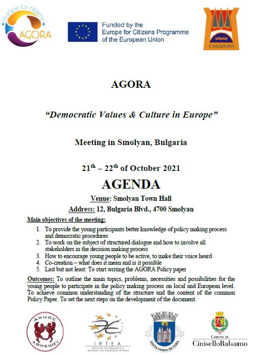 This event concerns an Open dialogue in a Public space where a simulation of democratic process n decision- making during Ancient Athens will take place. This experimental method of dialogue and participation will be applied under the topic “The ability to support the local authorities in order to promote European Citizen Rights and European cultural heritage.” During AGORA, young participants will interact with academics, local authorities representatives and local community.
